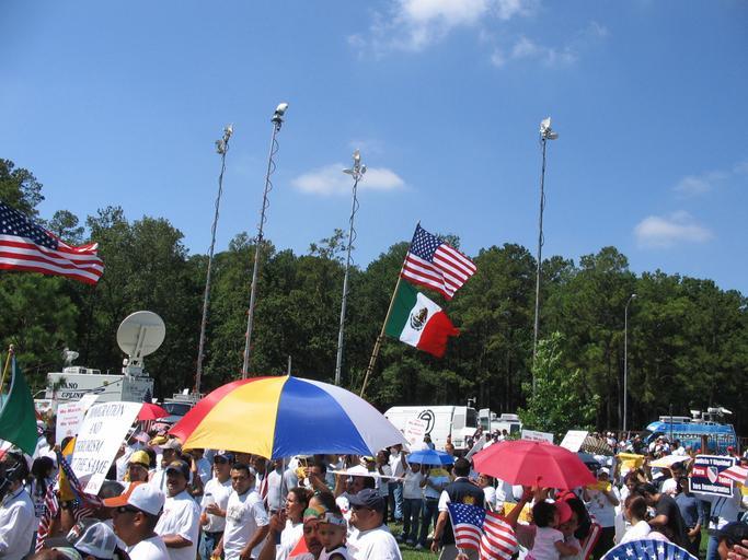 Keywords: A day without immigrants - Mexican and American flags.jpg s shall come later own 2006-05-01 Kyle Moore Own work all rights released Public domain Great American Boycott