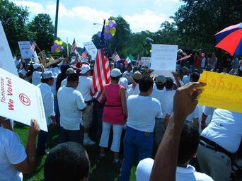 Keywords: A day without immigrants - Protesters.jpg s shall come later own 2006-05-01 Kyle Moore Own work all rights released Public domain Great American Boycott