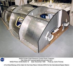 | Keywords: A Full-Size Mockup of the Cabin for the Crew Return Vehicle (CRV) for the International Space Statio DVIDS701738.jpg en This photo taken at NASA's Johnson Space Center Houston Texas shows a full-size mockup of the cabin for the Crew Return Vehicle CRV for the International Space Station The X-38 Crew Return Vehicle CRV research project is designed to develop the technology for a prototype emergency crew return vehicle or lifeboat for the International Space Station The project is also intended to develop a crew return vehicle design that could be modified for other uses such as a joint U S and international human spacecraft that could be launched on the French Ariane-5 Booster The X-38 project is using available technology and off-the-shelf equipment to significantly decrease development costs Original estimates to develop a capsule-type crew return vehicle were estimated at more than 2 billion X-38 project officials have estimated that development costs for the X-38 concept will be approximately one quarter of the original estimate Off-the-shelf technology is not necessarily old technology Many of the technologies being used in the X-38 project have never before been applied to a human-flight spacecraft For example the X-38 flight computer is commercial equipment currently used in aircraft and the flight software operating system is a commercial system already in use in many aerospace applications The video equipment for the X-38 is existing equipment some of which has already flown on the space shuttle for previous NASA experiments The X-38's primary navigational equipment the Inertial Navigation System/Global Positioning System is a unit already in use on Navy fighters The X-38 electromechanical actuators come from previous joint NASA U S Air Force and U S Navy research and development projects Finally an existing special coating developed by NASA will be used on the X-38 thermal tiles to make them more durable than those used on the space shuttles The X-38 itself was an unpiloted lifting body designed at 80 percent of the size of a projected emergency crew return vehicle for the International Space Station although two later versions were planned at 100 percent of the CRV size The X-38 and the actual CRV are patterned after a lifting-body shape first employed in the Air Force-NASA X-24 lifting-body project in the early to mid-1970s The current vehicle design is base lined with life support supplies for about nine hours of orbital free flight from the space station It's landing will be fully automated with backup systems which allow the crew to control orientation in orbit select a deorbit site and steer the parafoil if necessary The X-38 vehicles designated V131 V132 and V-131R are 28 5 feet long 14 5 feet wide and weigh approximately 16 000 pounds on average The vehicles have a nitrogen-gas-operated attitude control system and a bank of batteries for internal power The actual CRV to be flown in space was expected to be 30 feet long The X-38 project is a joint effort between the Johnson Space Center Houston Texas JSC Langley Research Center Hampton Virginia LaRC and Dryden Flight Research Center Edwards California DFRC with the program office located at JSC A contract was awarded to Scaled Composites Inc Mojave California for construction of the X-38 test airframes The first vehicle was delivered to the JSC in September 1996 The vehicle was fitted with avionics computer systems and other hardware at Johnson A second vehicle was delivered to JSC in December 1996 Flight research with the X-38 at Dryden began with an unpiloted captive-carry flight in which the vehicle remained attached to its future launch vehicle Dryden's B-52 008 There were four captive flights in 1997 and three in 1998 plus the first drop test on March 12 1998 using the parachutes and parafoil Further captive and drop tests occurred in 1999 In March 2000 Vehicle 132 completed its third and final free flight in the highest fastest and longest X-38 flight to date It was released at an altitude of 39 000 feet and flew freely for 45 seconds reaching a speed of over 500 miles per hour before deploying its parachutes for a landing on Rogers Dry Lakebed In the drop tests the X-38 vehicles have been autonomous after airlaunch from the B-52 After they deploy the parafoil they have remained autonomous but there is also a manual mode with controls from the ground NASA Identifier NIX-EC99-45255-19 2009-12-09 Glenn Research Center https //www dvidshub net/image/701738 701738 2012-10-10 14 57 WASHINGTON DC US 3 PD-USGov Langley Research Center Images from DoD uploaded by Fæ |