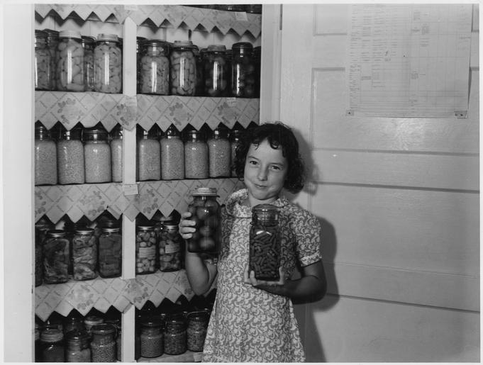 | Keywords: A girl holding two jars of canned goods - NARA - 196256.tif Scope and content General notes 196256 Local identifier Roosevelt Franklin D Franklin Delano 1882-1945 Franklin D Roosevelt Library NLFDR 4079 Albany Post Road Hyde Park NY 12538-1999 Record group Collection FDR-PHOCO Franklin D Roosevelt Library Public Domain Photographs 1882 - 1962 Record group ARC 1184 Franklin D Roosevelt Library Public Domain Photographs compiled 1882 - 1962 Series ARC 195301 File unit File unit ARC Variant control numbers NAIL Control Number NLR-PHOCO-A-65593 37 yes Other versions NARA-cooperation PD-USGov Glass food jars Pantries Shelves Canned food Food stockpiling |
