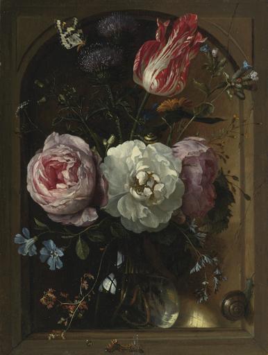 Keywords: A glass vase of flowers including roses, a tulip, and thistles with snails, a butterfly, and a caterpillar.jpg Artwork en A glass vase of flowers including roses a tulip and thistles with snails a butterfly and a caterpillar oil on panel Size cm 26 3 20 object history exhibition history credit line place of creation PD-old-100 http //www sothebys com/content/dam/stb/lots/N09/N09161/101N09161_76V7P jpg accession number Uploaded with UploadWizard Jan Davidsz de Heem