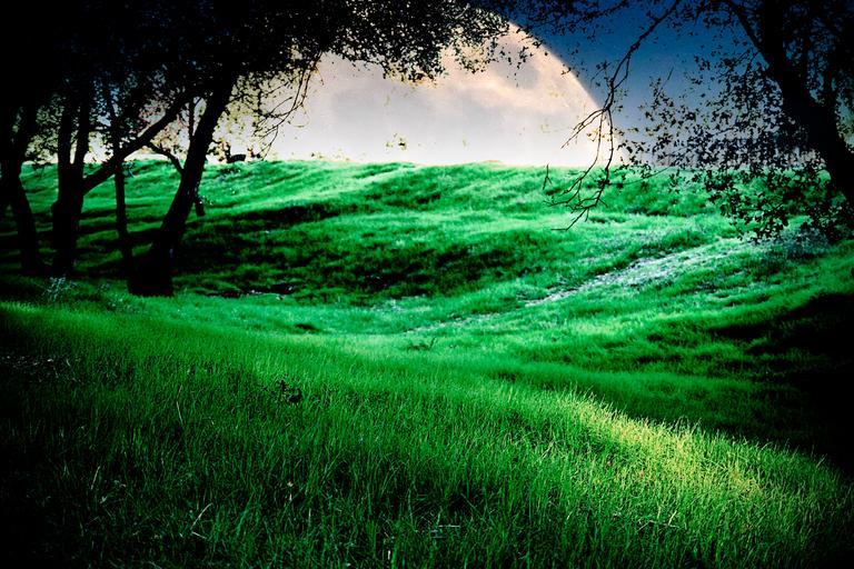 Keywords: fantasy mystical dream landscape meadow moon green moon meadow tree