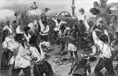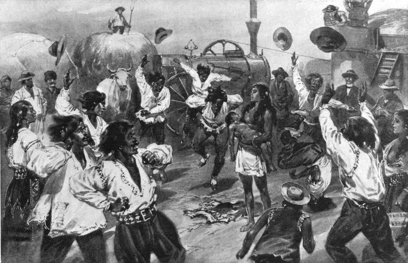 | Keywords: A gypsy cure for bear-bite - A strange scene on a Roumanian farm.jpg  of a curious scene he witnessed a few days ago Threshing was going on at a farm and several families of gypsies who were travelling with performing bears were engaged to help in the work One of their children approaching too close to one of the tethered animals was bitten and brought to the place where his parents were working by his bigger companions Then arose a great outcry and the child's parents insisted on the performance of their native rites The mother stripped herself almost nude and standing in the centre of a circle formed by the members of her party accompanied them in the singing of a gypsy dirge Gradually working themselves almost to a pitch of frenzy they then began yelling and stamping like maniacs while the father of the child turned head-over-heels round the ring until he fell exhausted After twenty minutes of this the child was taken to the hospital The Illustrated London News p 535 1905-10-14 Drawn by Hermanus Willem Koekkoek based on sketches by Rook Carnegie Creator Hermanus Willem Koekkoek Creator Rook Carnegie PD-old-auto-1923 1929 1905 in Romania Romanian Roma people in art Paganism in Romania ILN 1905 Hermanus Willem Koekkoek Rook Carnegie 1905 in art |