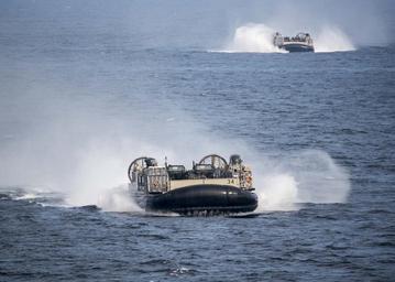 Keywords: landing craft air cushion LCAC approaches amphibious assault ship USS