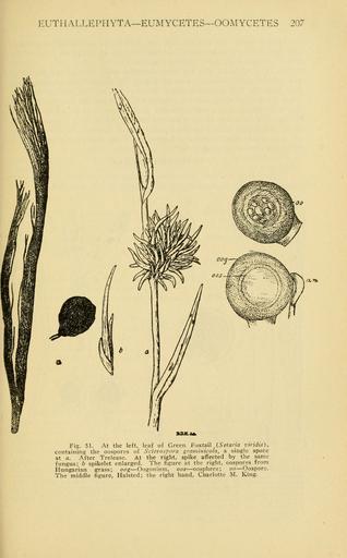 Keywords: A manual of poisonous plants (Page 207) (6005305884).jpg EUTHALLEPHYTA EUMYCETES OOMYCETES 207 <br> VULi <br> Fig 51 At the left leaf of Green Foxtail Setaria viridis <br> containing the oospores of Sclerospora graminicola a single spore <br> at a After Trelease At the right spike affected by the same <br> fungus; b spikelet enlarged The figure at the right oospores from <br> Hungarian grass; oog Oogonium oos oosphere; oo Oospore <br> The middle figure Halsted; the right hand Ciiarlotte M King 11346803 42239 10913 Page 207 Text http //www biodiversitylibrary org/page/11346803 1911 10 5962/bhl title 10913 Pammel L H NameFound Eumycetes NameFound Euthallephyta NameFound Oogonium NameFound Oomycetes NameConfirmed Oomycetes EOLID 5719 NameBankID 1560373 NameFound Sclerospora graminicola NameConfirmed Sclerospora graminicola EOLID 1030053 NameBankID 3068016 NameFound Setaria viridis NameConfirmed Setaria viridis EOLID 1114660 NameBankID 2661302 Biodiversity Heritage Library A manual of poisonous plants Poisonous plants United States Mertz Library The New York Botanical Garden bhl page 11346803 dc identifier http //biodiversitylibrary org/page/11346803 united states mertz library the new york botanical garden Information field Flickr posted date ISOdate 2011-08-03 Check categories 2015 September 10 CC-BY-2 0 BioDivLibrary https //flickr com/photos/61021753 N02/6005305884 2015-09-10 19 54 23 cc-by-2 0 PD-old-70-1923 A manual of poisonous plants Photos uploaded from Flickr by FĂŚ using a script |