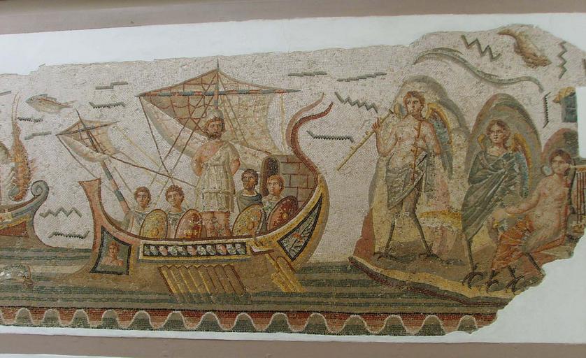 | Keywords: A mosaic BardoMuseum (2).JPG Ulysse et les sirènes Mosaïque du musée du Bardo - Tunis 2me siècle Ulixes mosaic at the Bardo Museum in Tunis Tunisia 2nd century AD Ulisse e le sirene Mosaico pavimentale romano del secolo II d C al Museo del Bardo a Tunisi Own Effi Schweizer 2009-03-19 Ulixes mosaic in the Bardo National Museum Tunis Mosaics of fish |