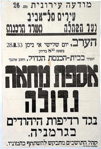 View Original: | A_poster_calling_to_protest_against_the_persecution_of_Jews_in_Germany,_Tel_Aviv_1933.jpg (405x599) | |||