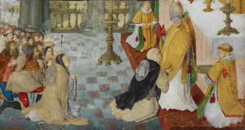 Keywords: A Rainha Santa Isabel deposita a sua coroa aos pés do Arcebispo de Santiago de Compostela.png en Saint Elizabeth Queen of Portugal a Rainha Santa Isabel places her crown on the feet of the Archbishop of Santiago de Compostela pt A Rainha Santa Isabel deposita a sua coroa aos pés do Arcebispo de Santiago de Compostela Between 1530 1534 Image taken from The Portuguese Genealogy / Genealogia dos Reis de Portugal Originally published/produced in Portugal Lisbon 1530-1534 British Library image Add MS 12531 add_ms_12531_f009~r Add_MS_12531 yes Creator Antonio de Hollanda other versions PD-old-70-1923 Uploaded with UploadWizard Elizabeth of Aragon in miniatures Roman Catholic Archdiocese of Santiago de Compostela The Portuguese Genealogy Genealogia dos Reis de Portugal 1530-1534 - BL Add MS 12531 Images released by British Library Images Online/derivatives |