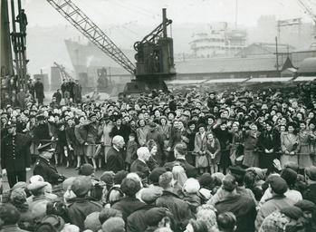 Keywords: visits events royal monarchy industry patriotic tyne & wear tynewear north east northeast historical maritime war time wartime king prince morale queen outdoor This is a view of Princess Elizabeth on a royal walkabout after the launch of the ‘British Princess’ at the shipyard of Sir James Laing & Sons Ltd, Deptford, 30 April 1946. Reference: DS.LG/4/PH/4/1 pg48 On 22 November Prince William will be visiting Sunderland and South Tyneside to take part in a number of youth development events. During the visit he will also officially open Haven Point, the new leisure centre in South Shields. To celebrate this Tyne & Wear Archives has produced a short flickr set remembering past royal visits to the region’s shipyards. Most of the visits featured here took place during difficult times and they gave a real boost to public spirits in the face of two World Wars. A short blog relating to these images can be read here . These images are part of the Tyne & Wear Archives Shipyard Collection. In July 2013 the outstanding historical significance of the Collection was recognised by UNESCO through its inscription to the UK Memory of the World Register. (Copyright) We're happy for you to share these digital images within the spirit of The Commons. Please cite 'Tyne & Wear Archives & Museums' when reusing. Certain restrictions on high quality reproductions and commercial use of the original physical version apply though; if you're unsure please email archives@twmuseums.org.uk This is a view of Princess Elizabeth on a royal walkabout after the launch of the ‘British Princess’ at the shipyard of Sir James Laing & Sons Ltd, Deptford, 30 April 1946. Reference: DS.LG/4/PH/4/1 pg48 On 22 November Prince William will be visiting Sunderland and South Tyneside to take part in a number of youth development events. During the visit he will also officially open Haven Point, the new leisure centre in South Shields. To celebrate this Tyne & Wear Archives has produced a short flickr set remembering past royal visits to the region’s shipyards. Most of the visits featured here took place during difficult times and they gave a real boost to public spirits in the face of two World Wars. A short blog relating to these images can be read here . These images are part of the Tyne & Wear Archives Shipyard Collection. In July 2013 the outstanding historical significance of the Collection was recognised by UNESCO through its inscription to the UK Memory of the World Register. (Copyright) We're happy for you to share these digital images within the spirit of The Commons. Please cite 'Tyne & Wear Archives & Museums' when reusing. Certain restrictions on high quality reproductions and commercial use of the original physical version apply though; if you're unsure please email archives@twmuseums.org.uk
