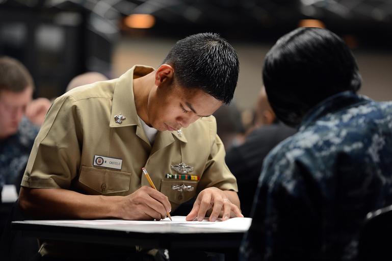 Keywords: A Sailor takes his advancement exam. (8407483271).jpg YOKOSUKA Japan Jan 17 2012 Hospital Corpsman 1st Class Markant Castelo assigned to U S Naval Hospital Yokosuka takes the Navy-wide chief petty officer advancement exam the base enlisted club at Fleet Activities Yokosuka The exam assesses a Sailor's knowledge of in-rate training and professional military knowledge U S Navy photo by Mass Communication Specialist 3rd Class Declan Barnes/Released 130117-N-TG831-018 Join the conversation http //www facebook com/USNavy www facebook com/USNavy http //www twitter com/USNavy www twitter com/USNavy http //navylive dodlive mil navylive dodlive mil https //www flickr com/photos/usnavy/8407483271/ A Sailor takes his advancement exam 2013-01-17 09 18 https //www flickr com/people/56594044 N06 Official U S Navy Page from United States of America PD-USNavy Official U S Navy Imagery https //flickr com/photos/56594044 N06/8407483271 2016-12-14 05 01 52 United States Government Work Military training Files from the U S Navy Flickr stream Files uploaded by Reguyla People of the United States Navy |