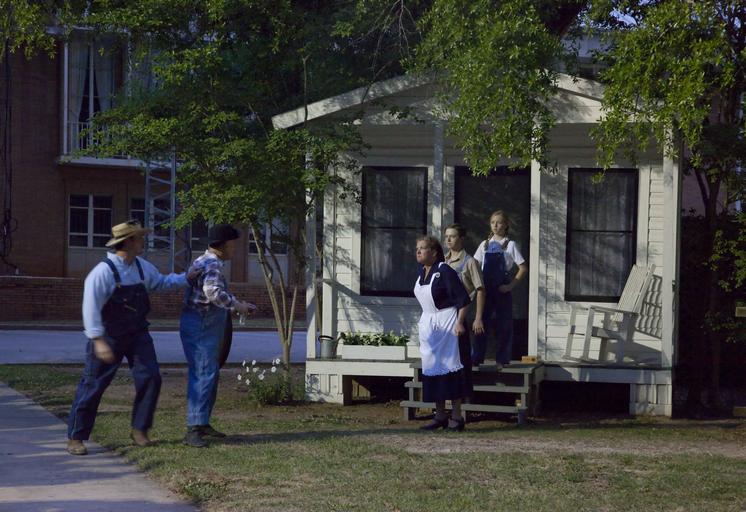 | Keywords: A scene from the play "To Kill A Mockingbird," performed in Monroeville, Alabama LCCN2010638522.tif 1 photograph digital TIFF file color Notes This special presentation commemorates the 50th anniversary of the best-selling Pulitzer Prize-winning novel by Harper Lee a native of Monroeville Alabama Many literary scholars and local residents believe some of Ms Lee's childhood acquaintances served as models for the personalities in the revered book concerning the struggle against racial injustice in the South during the 1930s ; Gift; George F Landegger; 2010; DLC/PP-2010 090 ; Forms part of George F Landegger Collection of Alabama Photographs in Carol M Highsmith's America Project in the Carol M Highsmith Archive ; Title date subject note and keywords provided by the photographer ; Credit line The George F Landegger Collection of Alabama Photographs in Carol M Highsmith's America Library of Congress Prints and Photographs Division 2010 Creator Carol M Highsmith Library of Congress Catalog http //lccn loc gov/2010638522 Image download https //cdn loc gov/master/pnp/highsm/07100/07108a tif Original url http //hdl loc gov/loc pnp/highsm 07108 No known restrictions on publication LOC-image highsm 07108 PD-Highsmith Images uploaded by Fæ George F Landegger Collection of Alabama Photographs in Carol M Highsmith's America Project in the Carol M Highsmith Archive The George F Landegger Collection of Alabama Photographs in Carol M Highsmith's America Library of Congress Prints and Photographs Division Photographs by Carol M Highsmith |