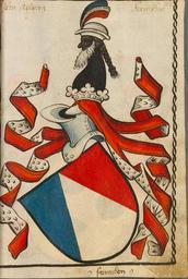 | Keywords: A-Scheibler93ps.jpg Scheibler'sches Wappenbuch älterer Teil http //mdzx bib-bvb de/codicon/inventiconCod icon 20312 20c html Bayerische Staatsbibliothek Cod icon 312 c 1450 - 1480 1450 - 1580 verschiedene unbekannte Künstler Author died more than 70 years ago - public domain PD-old Coats of arms of Absberg family |