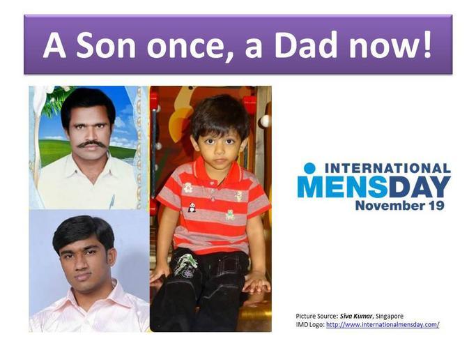 | Keywords: men mensday mensrights menarehumanstoo mensrightsarehumanrights showmensomelove internationalmensday people text Siva Kumar was brought up by his father in a strict discipline. As a kid, more than love, Siva used to respect his father. After his father left, Siva managed on his own to make a career as a Chemist. He is settled in Singapore now, happily married and is a proud father of two kids. Siva understands that his father was only trying to grow him as a gentleman. If he is reaping any fruits of happiness today, he feels, it is only because of the way chosen by his father in bringing him up! He can never thank his father enough!! That's why, he chose to showcase his father as well in the picture, when asked to donate it for a cause.  Siva Kumar was brought up by his father in a strict discipline. As a kid, more than love, Siva used to respect his father. After his father left, Siva managed on his own to make a career as a Chemist. He is settled in Singapore now, happily married and is a proud father of two kids. Siva understands that his father was only trying to grow him as a gentleman. If he is reaping any fruits of happiness today, he feels, it is only because of the way chosen by his father in bringing him up! He can never thank his father enough!! That's why, he chose to showcase his father as well in the picture, when asked to donate it for a cause. |