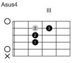 Keywords: A-sus-4.jpg Eigenanfertigung 2005-11-30 own assumed Red Rooster Guitar chords in standard tuning