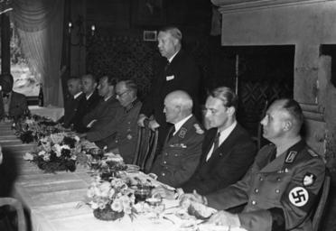 Keywords: quisling vidkun quisling vidkunquisling andre verdenskrig andreverdenskrig second world war secondworldwar world war ii worldwarii okkupasjonstiden blackandwhite monochrome black and white T. v. ved langsiden minister Schancke, ukjent, minister Fuglesang, Bormann (sjef for tysk arbeidstjeneste i Norge, Quisling, gen. Frölich Hansen(sjef for den norske arbeidstjeneste), minister Axel Stang, ukjent (ty.) 1942/07/13. RA/PA- 1209/Ue 90/ img018 T. v. ved langsiden minister Schancke, ukjent, minister Fuglesang, Bormann (sjef for tysk arbeidstjeneste i Norge, Quisling, gen. Frölich Hansen(sjef for den norske arbeidstjeneste), minister Axel Stang, ukjent (ty.) 1942/07/13. RA/PA- 1209/Ue 90/ img018 |
