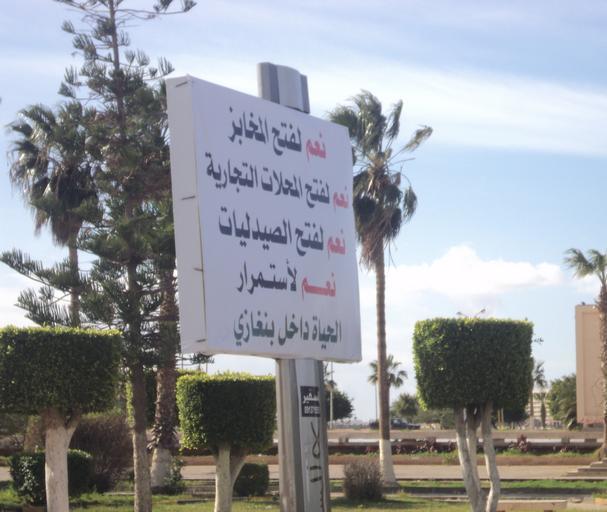 | Keywords: A tablet in Benghazi.JPG en A tablet in Benghazi It reads Yes for opening bakerys yes for opening shops yes for opening pharmacies yes for continuance of life in Beghaazi ar لافتة في مدينة بنغازي own Maher27777 2011-02-23 Demonstrations and protests against the Government of Libya in the Libyan civil war held in Benghazi |