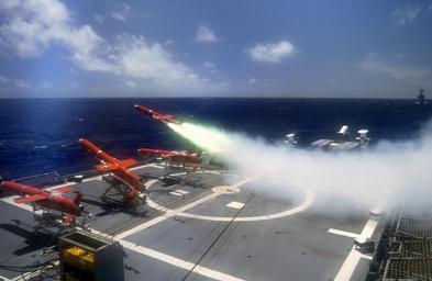 | Keywords: US Navy 030820-N-2613R-002 A target drone is fired off the flight deck aboard USS Cushing (DD 985), that will be used to give the Navy an opportunity for real-world target practice.jpg en Okinawa Japan Aug 19 2003 -- A target drone is fired off the flight deck aboard USS Cushing DD 985 that will be used to give the Navy an opportunity for real-world target practice U S Navy photo by Photographers Mate 2nd Class Erich Ryland RELEASED 2003-08-19 030820-N-2613R-002 Navy http //www navy mil/view_image asp id 9134 U S Navy photo by Photographers Mate 2nd Class Erich Ryland PD-USGov-Military-Navy Drone launches BQM-74 Chukar Aboard USS Cushing DD-985 Images from US Navy location Okinawa Japan |