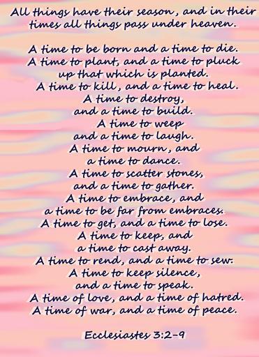 | Keywords: ecclesiastes song lyrics songlyrics scripture roger sadler rogersadler document text outdoor writing A time to weep and a time to laugh--Ecclesiastes 3:2-9 Welcome to print it out as a poster. A time to weep and a time to laugh--Ecclesiastes 3:2-9 Welcome to print it out as a poster. |