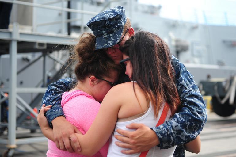 Keywords: A U.S. Sailor assigned to the guided-missile destroyer USS Michael Murphy (DDG 112) embraces family and friends before leaving Joint Base Pearl Harbor-Hickam, Hawaii, for an independent deployment to the western 141020-N-QG393-018.jpg en A U S Sailor assigned to the guided-missile destroyer USS Michael Murphy DDG 112 embraces family and friends before leaving Joint Base Pearl Harbor-Hickam Hawaii for an independent deployment to the western Pacific Ocean Oct 20 2014 The Murphy was scheduled to conduct goodwill activities with partner nations along with various presence operations during the ship's first operational forward deployment 2014-10-20 MC2 Tiarra Fulgham http //www defenseimagery mil/imageRetrieve action guid 877b7a2970ab721cc039207e39747fbbdebf114e t 2 Public domain photograph from defenseimagery mil http //www defenseimagery mil/imagery html guid 877b7a2970ab721cc039207e39747fbbdebf114e 141020-N-QG393-018 2014-10-22 Joint Base Pearl Harbor-Hickam PD-USGov-Military-Navy 2014 in Pearl Harbor Images from DoD uploaded by Fæ |