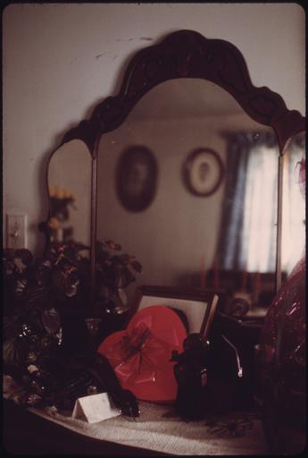 Keywords: A VALENTINE CANDY BOX BRIGHTENS THE DRESSER IN THE BEDROOM OF THE HERSHAL AND MAI SHREWBURY HOME NEAR BECKLEY, WEST... - NARA - 556475.jpg Scope and content General notes 556475 Local identifier 412-DA-14023 Environmental Protection Agency 12/02/1970 - NARA-Author Corn Jack 1929- Photographer 8464440 <br /> West Virginia United States North and Central America state 4201959 39 -80 <br /> Still Picture Records Section Special Media Archives Services Division NWCS-S National Archives at College Park 8601 Adelphi Road College Park MD 20740-6001 04/1974 Record group Record Group 412 Records of the Environmental Protection Agency 1944 - 2006 Record group ARC 708 DOCUMERICA The Environmental Protection Agency's Program to Photographically Document Subjects of Environmental Concern compiled 1972 - 1977 Series ARC 542493 File unit File unit ARC Variant control numbers Agency-Assigned Identifier 234/43/014023<br /> NAIL Control Number NWDNS-412-DA-14023 Other versions <gallery> File A_VALENTINE_CANDY_BOX_BRIGHTENS_THE_DRESSER_IN_THE_BEDROOM_OF_THE_HERSHAL_AND_MAI_SHREWBURY_HOME_NEAR_BECKLEY _WEST _-_NARA_-_556475 tif tif File A_VALENTINE_CANDY_BOX_BRIGHTENS_THE_DRESSER_IN_THE_BEDROOM_OF_THE_HERSHAL_AND_MAI_SHREWBURY_HOME_NEAR_BECKLEY _WEST _-_NARA_-_556475 jpg jpg </gallery> NARA-cooperation PD-USGov Chocolate boxes Valentine's Day Heart-shaped boxes Mirrors furniture |
