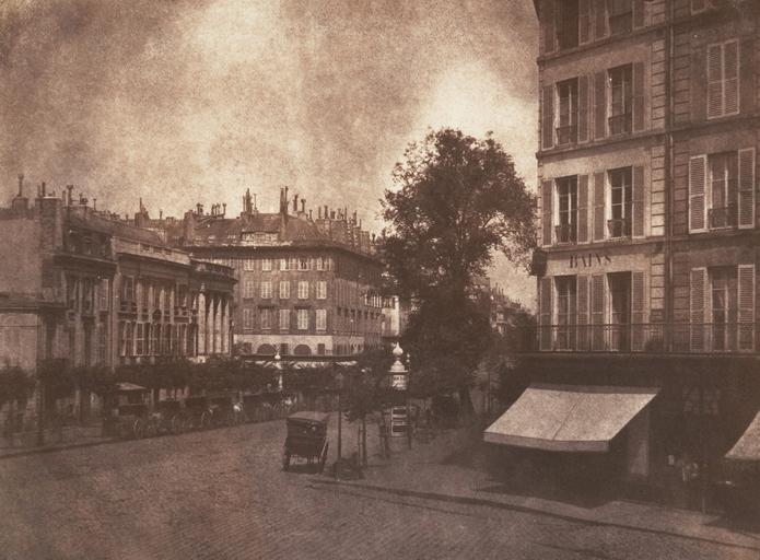 Keywords: A View of the Boulevards at Paris.jpg Talbot traveled to Paris in May 1843 to negotiate a licensing agreement for the French rights to his patented calotype process and with Henneman to give firsthand instruction in its use to the licensee the Marquis of Bassano <br> No doubt excited to be traveling on the continent with a photographic camera for the first time Talbot seized upon the chance to fulfill the fantasy he had first imagined on the shores of Lake Como ten years before Although his business arrangements ultimately yielded no gain Talbot's views of the elegant new boulevards of the French capital are highly successful a lively balance to the studied pictures made at Lacock Abbey Filled with the incidental details of urban life architectural ornamentation and the play of spring light this photograph unlike much of the earlier work is not a demonstration piece but rather a picture of the real world The animated roofline punctuated with chimney pots the deep shopfront awning the line of waiting horse and carriages the postered kiosks and the characteristically French shuttered windows all evoke as vivid a notion of mid-nineteenth-century Paris now as they must have when Talbot first showed the photographs to his friends and family in England <br> A variant of this scene taken from a higher floor in Talbot's Paris hotel appeared as plate 2 in The Pencil of Nature May “June 1843 Salted paper print from paper negative 15 1 x 19 9 cm 5 15/16 x 7 13/16 in Institution Metropolitan Museum of Art object history exhibition history <gallery>File William Henry Fox Talbot View of the Boulevards of Paris 1843 jpg File William Henry Fox Talbot View of the Boulevards at Paris 1843 jpg</gallery> 283070 Inscribed in ink verso BR LA49 credit line Gilman Collection Purchase The Horace W Goldsmith Foundation Gift through Joyce and Robert Menschel 2005 accession number 2005 100 609 PD-100 Historical images of Boulevard des Capucines 1844 1843 in Paris 1843 photographs 19th-century photographs of Paris The Pencil of Nature Photographs in the Metropolitan Museum of Art Images of Paris from the Metropolitan Museum of Art |