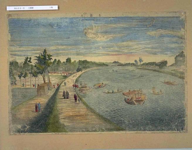 | Keywords: A View of Mimeguri Shrine from the Sumida River WDL2928.png Artwork ru Кокан Шиба 1747-1818 fr Kōkan Shiba 1747-1818 en Kōkan Shiba 1747-1818 zh 江汉 司马 1747-1818 pt Kōkan Shiba 1747-1818 ar كوكان شيبا 1747-1818 es Kōkan Shiba 1747-1818 ru Вид на х ам имегу и с еки Сумида fr Une Vue du sanctuaire Mimeguri depuis la rivière Sumida en A View of Mimeguri Shrine from the Sumida River zh 从墨田河观赏到的三囲神社风景 pt Uma Vista do Santuário de Mimeguri do Rio Sumida ar منظر عام لضريح ميمغوري من نهر سوميدا ru Эта абота Шиба Кокана 1747-1818 гг известного художника конца пе иода Эдо 1600-1867 гг исовавшего в ев опейском стиле является пе вой изготовленной японским масте ом г авю ой на меди а ней изоб ажен пейзаж с усыпальницей имегу и в укодзиме восточный Эдо нынешний Токио как он виден с бе ега еки Сумида Поскольку офо т был изготовлен для кинетоскопа левая и п авая его сто оны поменяны местами Кокан инте есовался западной наукой и написал т уды по аст ономии и геог афии а этой ка тине он использует западную технику пе спективы <br>Эдо; Реки; Река Сумида fr Cette œuvre de Shiba Kokan 1747-1818 un célèbre peintre de style occidental de la fin de la période Edo 1600-1867 est la première eau-forte sur cuivre par un artiste japonais Elle représente le paysage de Mimeguri Shrine à Mukōjima à l'est d'Edo actuelle Tokyo vu de la rive du fleuve Sumida L'eau-forte ayant été réalisée pour une boîte d'optique la gauche et la droite sont inversées Kokan s'intéressait à la science occidentale et écrivit des essais sur l'astronomie et la géographie Dans cette image il utilise la technique occidentale du dessin en perspective <br>Edo; Rivières fleuves et cours d'eau; Rivière Sumida en This work by Shiba Kokan 1747-1818 a famous Western-style painter of the late Edo period 1600-1867 is the first copperplate etching by a Japanese artist It depicts the landscape of Mimeguri Shrine at Mukōjima eastern Edo present-day Tokyo as seen from the bank of the Sumida River Because the etching was made for a peep-show box left and right are reversed Kokan was interested in Western science and wrote works on astronomy and geography In this picture he uses Western perspective drawing technique <br>Edo; Rivers; Sumida River zh 这是 幅司马江汉(1747-1818 年)的 品,司马江汉是江户时代(1600-1867 年) 著名的西洋画画家,该 品是日 画家的首份 版 刻 品 这幅画 描绘的是从墨田河河岸 能观赏到的三囲神社风景,三囲神社位于江户(今 京) 部的向岛 由于该 刻画是为西洋景盒子 创 的,因此左右可以翻转 司马江汉对西方科学很感兴趣,著 天文学和 理学方 的著 该画 中,他使用了西方 视画的 巧 <br>江户; 河流; 墨田河 pt Esta obra de Shiba Kokan 1747-1818 um famoso pintor de estilo ocidental do final do período Edo 1600-1867 é a primeira gravura em água-forte em placa de cobre feita por um artista japonês Ela retrata a paisagem do Santuário de Mimeguri em Mukōjima Edo Oriental atual Tóquio como era vista da margem do rio Sumida Como a gravação em água-forte foi feita para uma caixa de show de slides os lados esquerdo e direito estão invertidos Kokan estava interessava-se pela ciência ocidental e escreveu obras sobre astronomia e geografia Nesta imagem ele utiliza técnica ocidental de desenho em perspectiva <br>Edo; Rios; Rio Sumida ar يشكل هذا العمل أول حفر على صفيحة نحاسية لفنان ياباني، شيبا كوكان 1747-1818 ، وهو فنان مشهور كان يرسم على النمط الغربي والذي عاش في أواخر فترة الإيدو 1600-1867 وتمثل منظرا طبيعيا لضريح ميمغوري في موكوجيما، شرق إيدو طوكيو حاليا ، من جهة ضفة نهر سوميدا ولأن الصورة المحفورة صُنعت لصندوق الفرجة تم عكس اليمين واليسار كان كوكان مهتما في العلوم الغربية وألف أعمالا في علم الفلك والجغرافيا وفي هذه الصورة يستخدم التقنية الغربية في استعمال المنظور في الرسم <br>إيدو; الأنهار; نهر سوميدا es Este trabajo de Kokan Shiba 1747-1818 un famoso pintor de estilo occidental de fines del período Edo 1600-1867 es el primer aguafuerte realizado en plancha de cobre por un artista japonés Representa el paisaje del Santuario de Mimeguri en Mukōjima al este de Edo actual Tokio como se ve desde la orilla del río Sumida Debido a que la grabación fue hecha para un mundonuevo la izquierda y la derecha son inversas Kokan estaba interesado en la ciencia occidental y escribió obras sobre astronomía y geografía En esta imagen utiliza la técnica del dibujo de perspectiva occidental <br>Edo; Ríos; Río Sumida 1783 ru Эстампы фотог афии fr Images photographies en Prints Photographs zh 图像 摄影 品 pt Imagens Fotografias ar مطبوعات، صور فوتوغرافية es Imágenes Fotografías en 1 page ; 26 5 × 38 7 centimeters ru ациональная па ламентская библиотека Японии fr Bibliothèque nationale de la Diète en National Diet Library zh 日 国立国会图书馆 pt Biblioteca Nacional da Dieta ar مكتبة اليابان الوطنية es Biblioteca Nacional de la Dieta http //hdl loc gov/loc wdl/jtndl 2928 object history exhibition