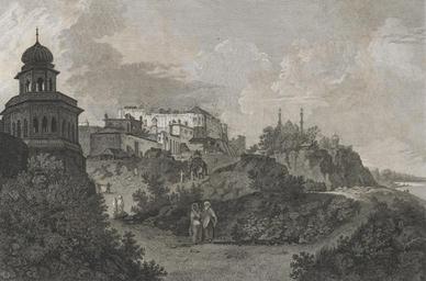 Keywords: A view of the Palace of the Nabob Asoph ul Dowlah at Lucknow.jpg en Engraving of a view of the Palace of the Nawab Asaf ud Daula at Lucknow by James Fittler 1758-1835 after William Hodges 1744-1797 Plate 11 of William Hodges 'Travels in India during the years 1780 1781 1782 1783' published in London in 1793 The palace of Nawab Asaf ud Daula seen in this view no longer stands According to Hodges it was built partly Shuja ud Daula and greatly extended his son Nawab Asaf ud Daula The palace was situated on the banks of the river Gumty It had large courts within the walls and a durbar or assembly room On a high bank shown on the right side of this view there was a mosque with two minarets 1793 http //www bl uk/onlinegallery/onlineex/apac/other/019wzz000002126u00011000 html Fittler James 1758-1835 PD-old-100 Uploaded with UploadWizard Awadh 1793 in India Historical images of Lucknow James Fittler |