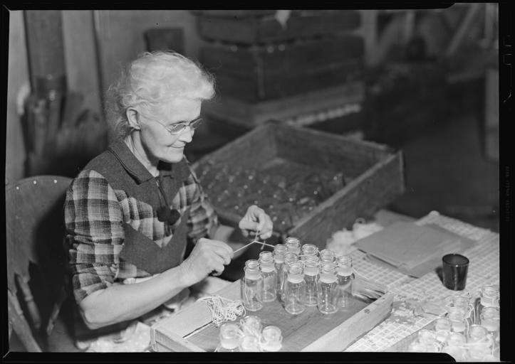 | Keywords: nara:arcid=518636 u.s. national archives usnationalarchives lewis hine lewishine 1937 millville new jersey newjersey the great depression thegreatdepression blackandwhite monochrome photo border black and white Original Caption: Millville, New Jersey - Glass bottles. A wash and tie girl tying stoppers to bottles. This is one of the few unskilled jobs for women in the glass factory. A wash and tie girl takes the bottle from the stopper grinders, washes it with automatic sprayers and ties the stopper to the bottle for packaging. (T. C. Wheaton Co.), March 1937 U.S. National Archives’ Local Identifier: 69-RP-409 Photographer: Hine, Lewis Subjects: The New Deal Tennessee Valley Authority Works Progress Administration Work Portraits The Great Depression Persistent URL: research.archives.gov/description/518636 Repository: Still Picture Records Section, Special Media Archives Services Division (NWCS-S), National Archives at College Park, 8601 Adelphi Road, College Park, MD, 20740-6001. For information about ordering reproductions of photographs held by the Still Picture Unit, visit: www.archives.gov/research/order/still-pictures.html Reproductions may be ordered via an independent vendor. NARA maintains a list of vendors at www.archives.gov/research/order/vendors-photos-maps-dc.html Access Restrictions: Unrestricted Use Restrictions: Unrestricted Original Caption: Millville, New Jersey - Glass bottles. A wash and tie girl tying stoppers to bottles. This is one of the few unskilled jobs for women in the glass factory. A wash and tie girl takes the bottle from the stopper grinders, washes it with automatic sprayers and ties the stopper to the bottle for packaging. (T. C. Wheaton Co.), March 1937 U.S. National Archives’ Local Identifier: 69-RP-409 Photographer: Hine, Lewis Subjects: The New Deal Tennessee Valley Authority Works Progress Administration Work Portraits The Great Depression Persistent URL: research.archives.gov/description/518636 Repository: Still Picture Records Section, Special Media Archives Services Division (NWCS-S), National Archives at College Park, 8601 Adelphi Road, College Park, MD, 20740-6001. For information about ordering reproductions of photographs held by the Still Picture Unit, visit: www.archives.gov/research/order/still-pictures.html Reproductions may be ordered via an independent vendor. NARA maintains a list of vendors at www.archives.gov/research/order/vendors-photos-maps-dc.html Access Restrictions: Unrestricted Use Restrictions: Unrestricted |