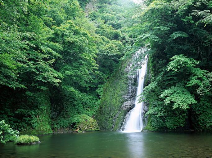 Keywords: outdoor sunlight green river travel dense wondrous trees scenery ray light smooth gravity forest still fall pool lush cascade background wild beam rain natural white spring rock leaf humid stream summer spectacle