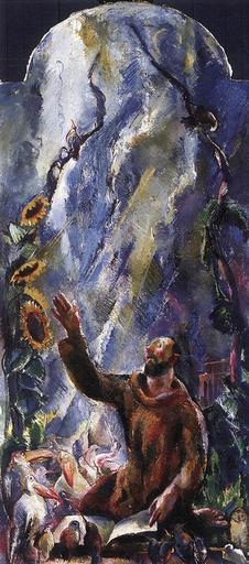 | Keywords: Aba-Novák St Francis Preaching to the Birds 1926.jpg Artwork Creator Vilmos Aba-Novák 1926 Oil on canvas Size cm 54 7 122 Institution Hungarian National Gallery object history exhibition history credit line accession number Fine Arts in Hungary http //www hung-art hu/kep/a/aba_nova/muvek/3/abano311 jpg http //www hung-art hu/frames-e html /english/a/aba_nova/muvek/3/index html PD-old-70 Paintings by Vilmos Aba-Novák in the Hungarian National Gallery 1926 paintings in Hungary Paintings of Francis of Assisi Sermon of St Francis |