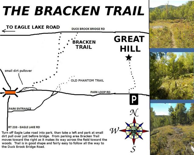 | Keywords: cleffstone road cleffstoneroad bar harbor barharbor maine new england newengland mount desert island mountdesertisland acadia national park nationalpark national parks nationalparks brecken trail breckentrail great hill greathill back packing backpacking hiking lost trails losttrails abandoned trails abandonedtrails ghost trails ghosttrails phantom trails phantomtrails maps of acadia mapsofacadia fawn pond trail fawnpondtrail camping outdoor text The old abandoned Bracken Trail is not the easiest to find and perhaps one of the harder ghost trails in Acadia national park to follow, but it can be done. It is one of several trails on Great Hill that the Park Service abandoned following the great fire of 47. Sections are well worn, sections are marked by branches or rock piles, and sections are very over grown with thick brush. The trail ends on the Duck Brook Bridge road, but in its day it continued on and connected to the Fawn Pond trail, yet another trail the Park Service abandoned. From time to time someone will ask me if it is legal to hike these abandoned trails. Yes, it is legal, though the Park Service does try and discourage this by attempting to conceal the start of these abandoned trails by laying tree branches across the start of these trails. If you were to look at very old maps of Bar Harbor, you would see that the Bracken Trail actually began on the corner of the Cleffstone Road. The old abandoned Bracken Trail is not the easiest to find and perhaps one of the harder ghost trails in Acadia national park to follow, but it can be done. It is one of several trails on Great Hill that the Park Service abandoned following the great fire of 47. Sections are well worn, sections are marked by branches or rock piles, and sections are very over grown with thick brush. The trail ends on the Duck Brook Bridge road, but in its day it continued on and connected to the Fawn Pond trail, yet another trail the Park Service abandoned. From time to time someone will ask me if it is legal to hike these abandoned trails. Yes, it is legal, though the Park Service does try and discourage this by attempting to conceal the start of these abandoned trails by laying tree branches across the start of these trails. If you were to look at very old maps of Bar Harbor, you would see that the Bracken Trail actually began on the corner of the Cleffstone Road. |
