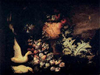 | Keywords: Abate Andrea Belvedere - Flowers and Ducks - WGA01850.jpg Artwork Creator Abate Andrea Belvedere before 1674 Oil on canvas size cm 126 155 Institution Palazzo Pitti object history credit line accession number WGA link 1850 http //www wga hu/art/b/belveder/flowduck jpg http //www wga hu/html/b/belveder/flowduck html painting still-life Italian 1651-1700 PD-old-100 Abate Andrea Belvedere 1674 Flowers and Ducks Galleria Palatina Florence 1670s paintings in Italy WGA form painting WGA type still-life WGA School Italian WGA time period 1651-1700 17th-century oil on canvas paintings in Italy Paintings of ducks 17th-century paintings of flowers 1670s paintings from Italy 17th-century paintings of animals |