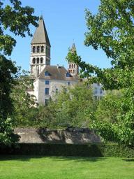 Keywords: Abbaye Saint-Philibert de Tournus vue du nord-ouest.jpg en The Saint-Philibert abbaye in Tournus seen from Nort-West and the banks of the Saône River Saône-et-Loire France fr Abbaye Saint-Philibert de Tournus vue du nord-ouest et des quais de la Saône Saône-et-Loire 2014-08-21 sf Tangopaso 46 56703 4 910534 heading SW Tower of Saint-Philibert de Tournus |