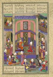 | View Original: | Abd_al-Aziz_(attr.),_Manuchihr_Welcomes_Sam_but_Orders_War_upon_Mihrab,_Folio_80v_from_the_Shahnama_(Book_of_Kings)_of_Shah_Tahmasp,_ca._1525,_Metmuseum.jpg (1699x2449) | |||