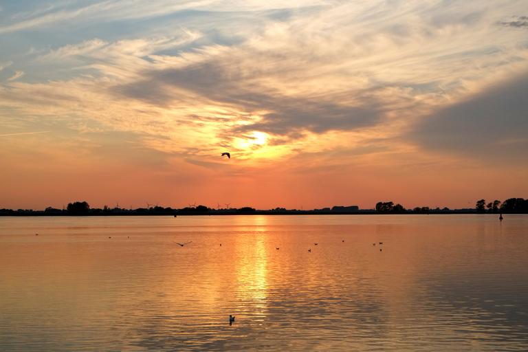 Keywords: abendstimmung river water sunset romance mirroring landscape nature waterfowl sky evening sky reflection atmospheric mood clouds gulls sunbeam weather mood cloudscape atmosphere romantic colourful clouds afterglow