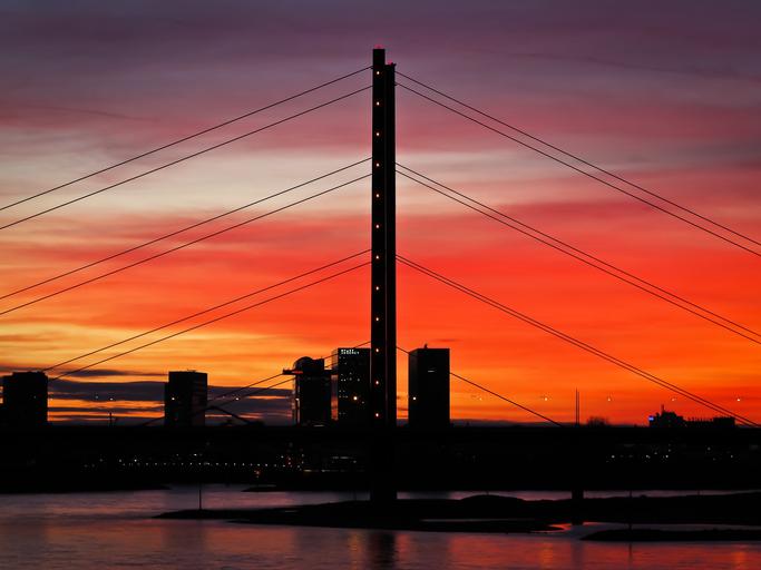 Keywords: abendstimmung sunset afterglow romance evening sky architecture silhouette bridge düsseldorf mood