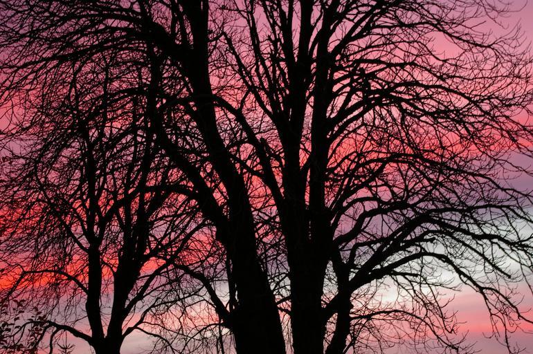 Keywords: abendstimmung sunset winter more sky red sky chestnut tree old tree branches branch log tree aesthetic contrasts mood