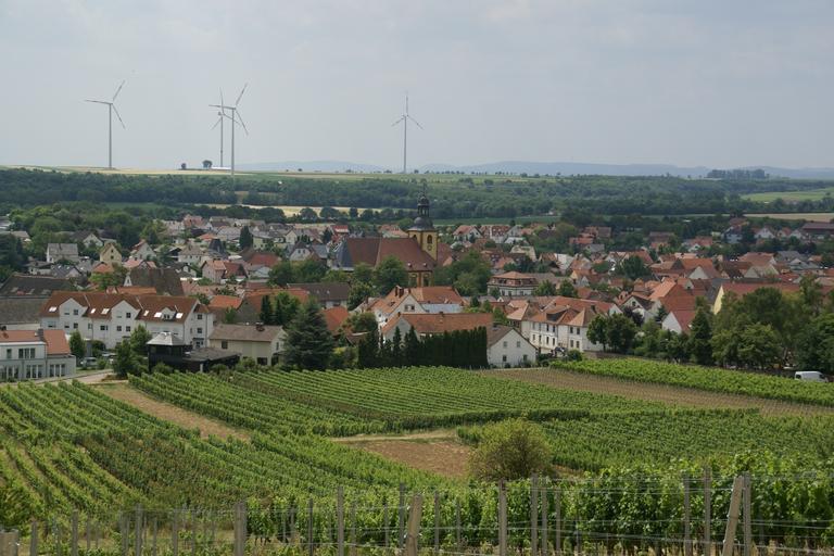 Keywords: abenheim germany village town view buildings wind turbines landscape rural