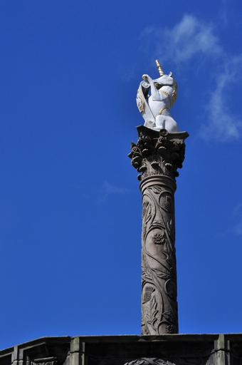 Keywords: aberdeen scotland great britain union street mercat cross unicorn statue sculpture castlegate royal monument memorial architecture mediaeval old landmark heritage history tourism sky clouds sunny city cityscape outdoors