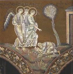| Keywords: Abraham bends down before the Three Angels.jpg en Abraham bends down before Holy Trinity angelic visitors at Mamre - mosaic in Monreale Cathedral own Sibeaster 2008-07 Abraham and three angels Cathedral Monreale - Old Testament mosaics Bowing |