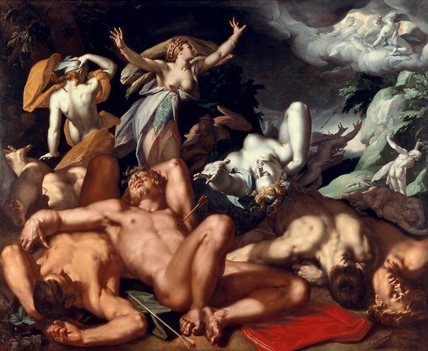 | Keywords: Abraham Bloemaert - Niobe beweent haar kinderen.jpg Artwork creator Abraham Bloemaert Original Niobe beweent haar kinderen Niobe weeping for her children 1591 oil canvas 204 cm x 249 5 cm Institution Statens Museum for Kunst Copenhagen Copenhagen accession number object history credit line user Dedden own PD-old-100 Dutch paintings in the Statens Museum for Kunst Bloemaert Niobe beweent haar kinderen Paintings by Abraham Bloemaert 1591 Niobe beweent haar kinderen 1590s mythological paintings Niobe beweent haar kinderen Diana after antiquity Bloemert Abraham Paintings of Apollo and Diana killing the children of Niobe Bloemert Abraham Nude group paintings Apollo 1591 paintings 16th-century oil on canvas paintings Mythological figures on clouds Paintings of Greek mythology Mythological figures in nature Paintings of people in nature Crying women in art |