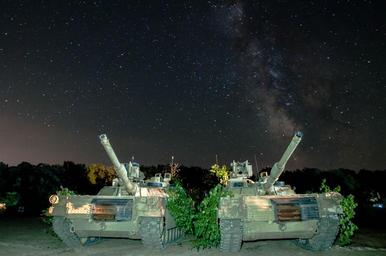 MAKE A MEME View Large Image Two M1A2 Abrams with Charlie Company, 3rd Battalion, 116th Cavalry Brigade Combat Team out of Ontario, Oregon, sit in the motorpool during Exercise Saber Guardian 16 at the Romanian Land Forces Combat Training Center in Cincu, Romania. ...