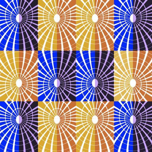 | Keywords: abstract radial radiating pattern colorful blue gold hues shades shapes geometric targets spiral bright rays motion optical illusion perception movement hypnotic modern repetition repeating grid tiles creative backdrop background star burst |