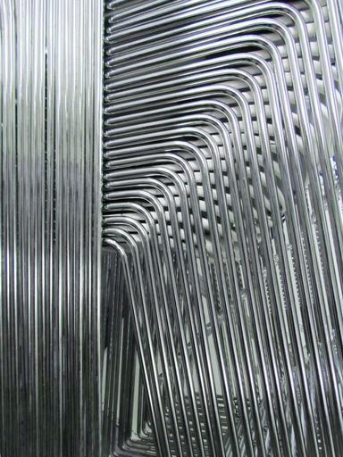 Keywords: abstract stacked chairs metal silver chair design pattern