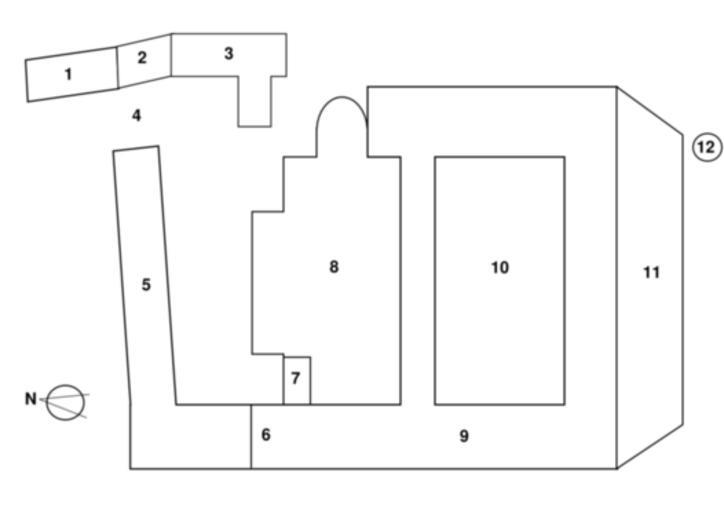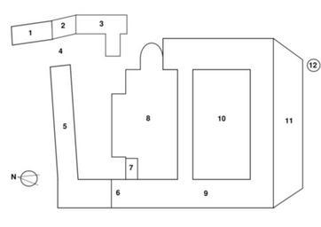 Keywords: Abtei michaelsberg grundriss-2006-01-19.png Grundriss der Abtei Michaelsberg Siegburg Deutschland <br /> 1 Abteistuben<br /> 2 Buch- und Kunsthandlung<br /> 3 Jugendgästehaus St Maurus<br /> 4 Tor<br /> 5 Edith-Stein-Exerzitienhaus des Erzbistums Köln<br /> 6 Klosterpforte<br /> 7 Turm<br /> 8 Abteikirche<br /> 9 Konvent<br /> 10 Quadrum<br /> 11 Garten<br /> 12 Johannistürmchen graphic created by Daniel Tibi Dti 2006-01-19 Daniel Tibi Dti released into public domain by Daniel Tibi Dti / Dti Michaelsberg Abbey Floor plans of monasteries Diagrams labelled with numbers only |