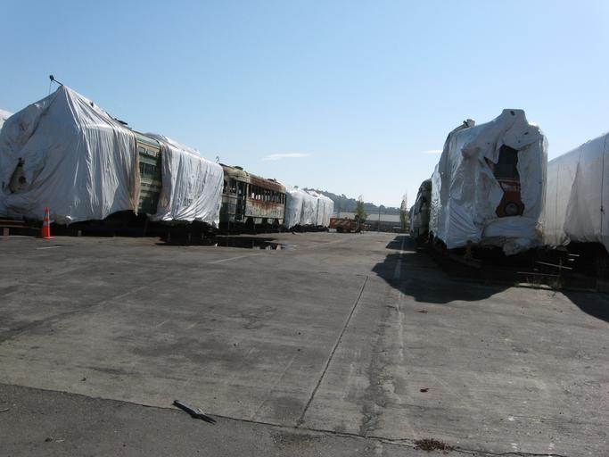 | Keywords: ABunchOfPCCsAtMarinDivisionOneBurnOneTiredOneImported.jpg en A bunch of retired PCCs at Marin Division The three covered ones are 1158 1168 and 151 The charred PCC is 1009 Own 2007-10-28 Goodshoped35110s F Market Wharves PCC type tramcars San Francisco Municipal Railway Historic Fleet |