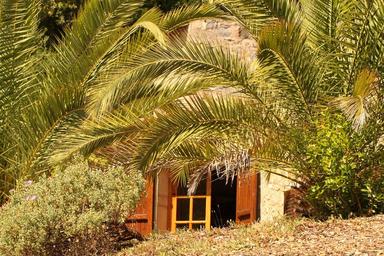 Keywords: accommodation holiday mediterranean still life palm trees home finca window date palm lattice windows south travel green plant flora decorative holiday flair garden mallorca