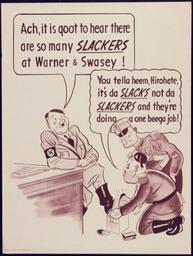 Keywords: Ach, it is goot to hear there are so many slackers at Warner & Swasey^ You tella heem, Hirohete, it's da slacks... - NARA - 535104.tif Scope and content General notes 535104 Local identifier 179-WP-1253 Office for Emergency Management War Production Board 01/1942 - 11/03/1945 Still Picture Records Section Special Media Archives Services Division NWCS-S National Archives at College Park 8601 Adelphi Road College Park MD 20740-6001 other date circa 1942 1943 Record group Record Group 179 Records of the War Production Board 1918 - 1947 Record group ARC 508 War Production Board compiled 1942 - 1943 Series ARC 533858 File unit File unit ARC Variant control numbers NAIL Control Number NWDNS-179-WP-1253 yes Other versions <gallery> File Ach _it_is_goot_to_hear_there_are_so_many_slackers_at_Warner_ amp _Swasey _You_tella_heem _Hirohete _it's_da_slacks _-_NARA_-_535104 tif tif File Ach _it_is_goot_to_hear_there_are_so_many_slackers_at_Warner_ amp _Swasey _You_tella_heem _Hirohete _it's_da_slacks _-_NARA_-_535104 jpg jpg </gallery> NARA-cooperation PD-USGov NARA TIF images with categorized JPGs |