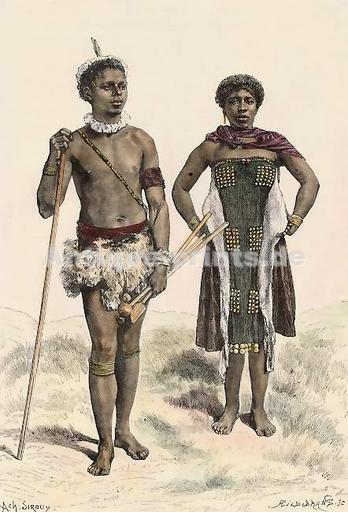 Keywords: Achille Louis Joseph Sirouy02.jpg en Homme et Femme Cafres South Africa Original wood engraving drawn by A Sirouy engraved by Hildibrand Hand-coloured 19x13cm http //www antique-prints de/shop/catalog php cat KAT53 lang ENG product P008647 Achille-Louis-Joseph Sirouy 1834-1904 1888 Achille Sirouy Bantu men Bantu women Men's fur clothing Fur fashion in 1888 Henri Theophile Hildibrand PD-old-100 |