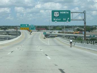 | Keywords: Acosta Bridge northbound end.jpg Looking north at the north end of the w Acosta Bridge in w Jacksonville Florida Taken July 27 2003 by User SPUI This is an example of a bicycle using a freeway legally as there are no signs prohibiting bicycles spuiphoto Acosta Bridge Bicycles in Florida Roads in Florida Cycling in Florida Road signs in Florida U S Route 17 in Florida |
